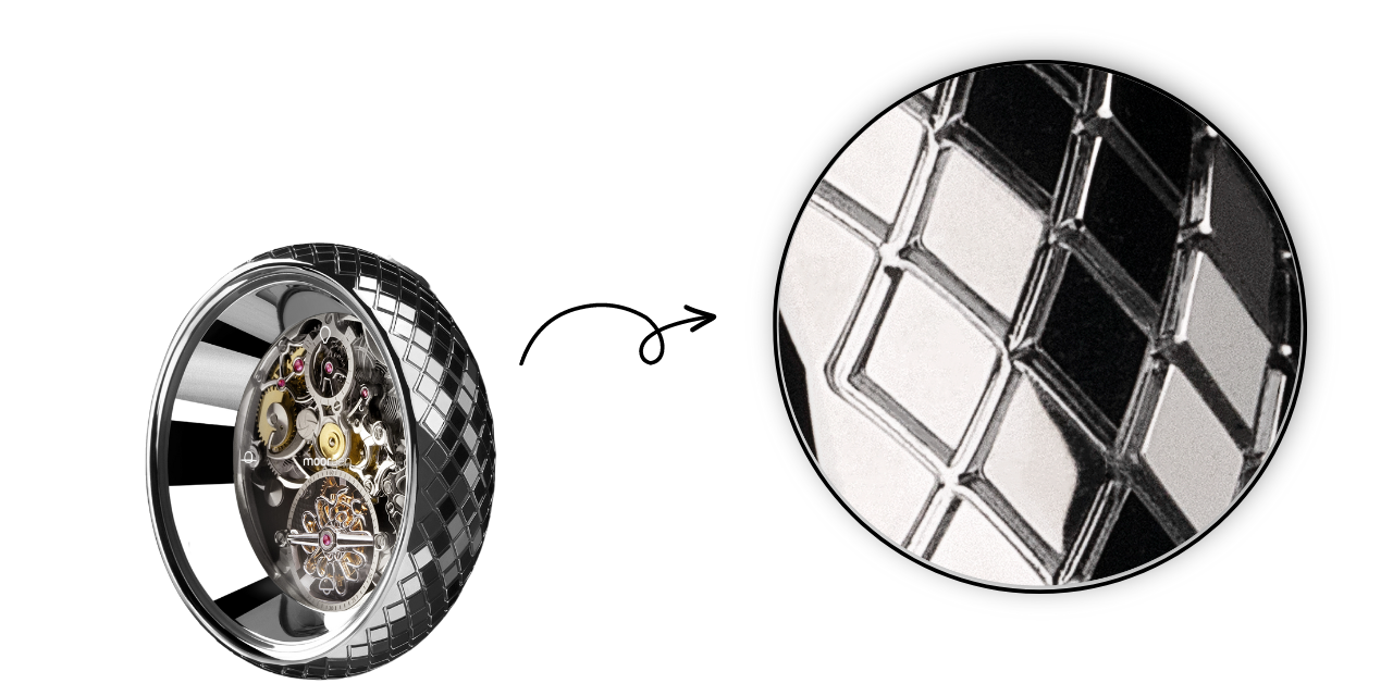 The surface of Moorgen Milan Series is covered by 24 Gold / 925 Silver, with precisely calculated angle of each diamond-cut facet, to ensure each surface of the outer rim shines exceptionally brilliant.