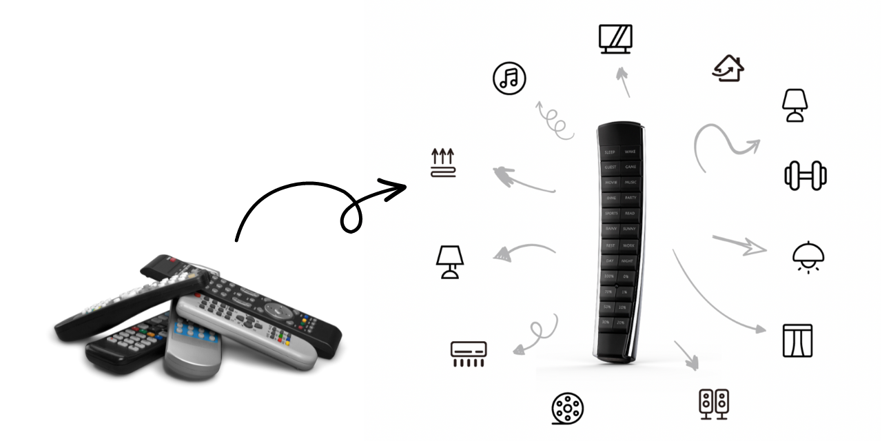家居基本需要上有至少兩個遙控器 - 電視及冷氣機。M36 智能遙控器不但融合兩個遙控器於一身,還可控制整的智能家居系統。